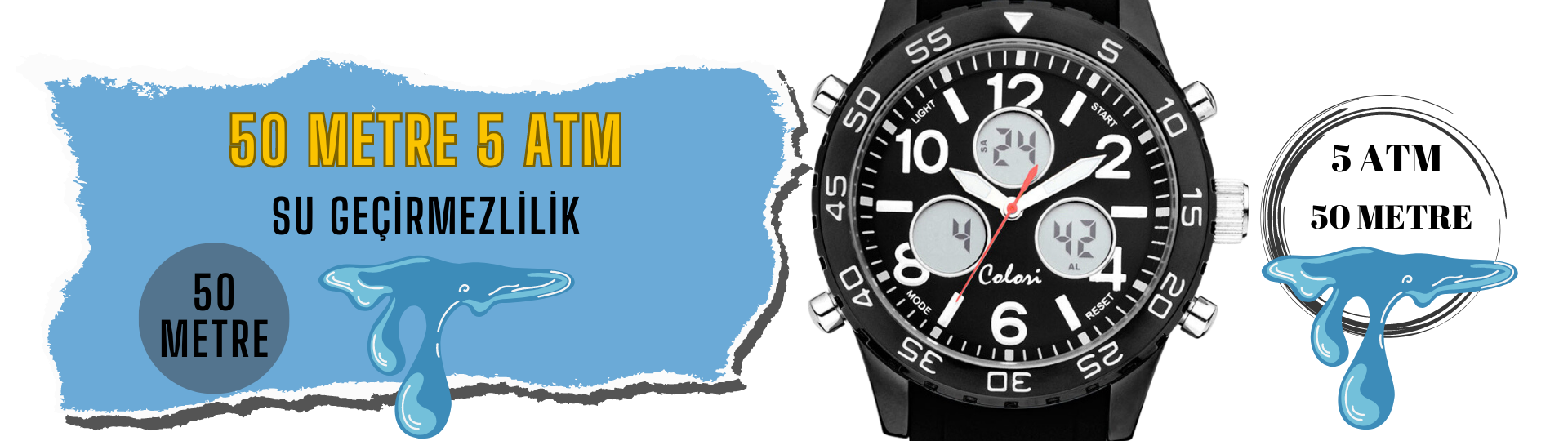 Quartz Digital Analog Teknoloji 52 mm Kasa Çapı /Yuvarlak Kasa Şekli Mineral Cam Özellik /5ATM Su Geçirmezlik Kronometre - Tarih - Alarm - Işık