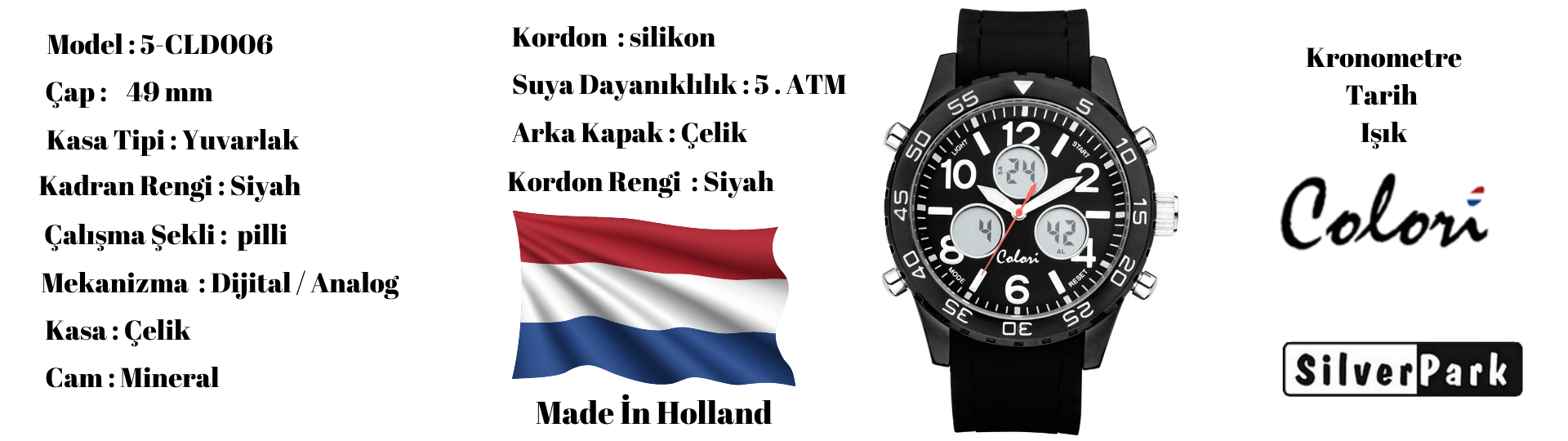 Colori Siyah Beyaz Erkek Saat Digital Sports Collection CLD006
