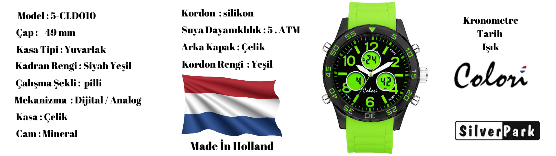Colori Siyah Yeşil Erkek Saat Digital Sports Collection CLD010