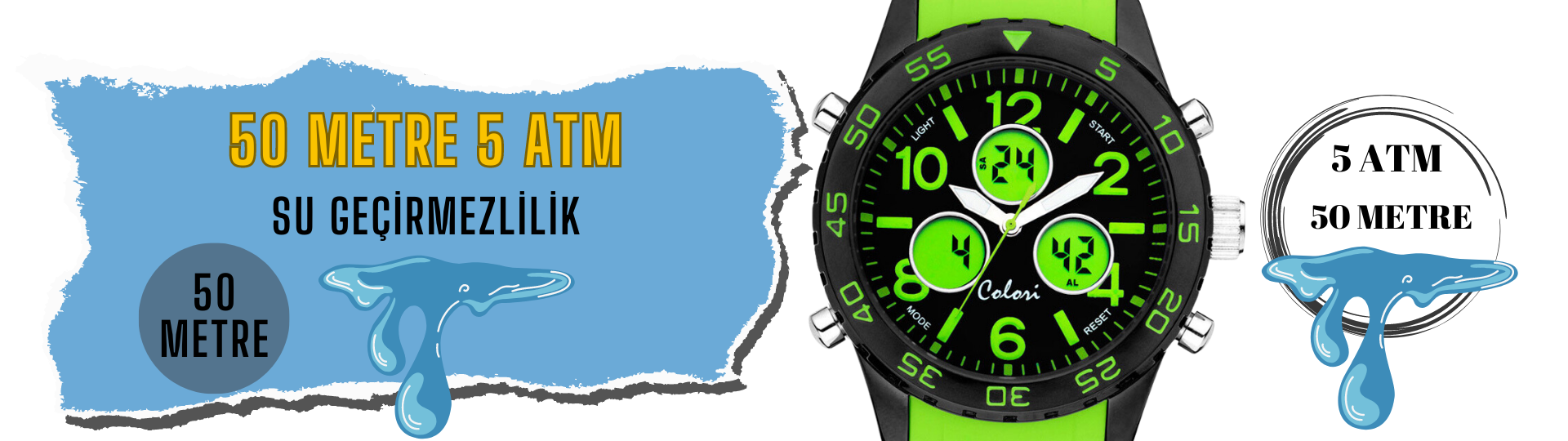 Quartz Digital Analog Teknoloji 52 mm Kasa Çapı /Yuvarlak Kasa Şekli Mineral Cam Özellik /5ATM Su Geçirmezlik Kronometre - Tarih - Alarm - Işık -Hızlı Kargo