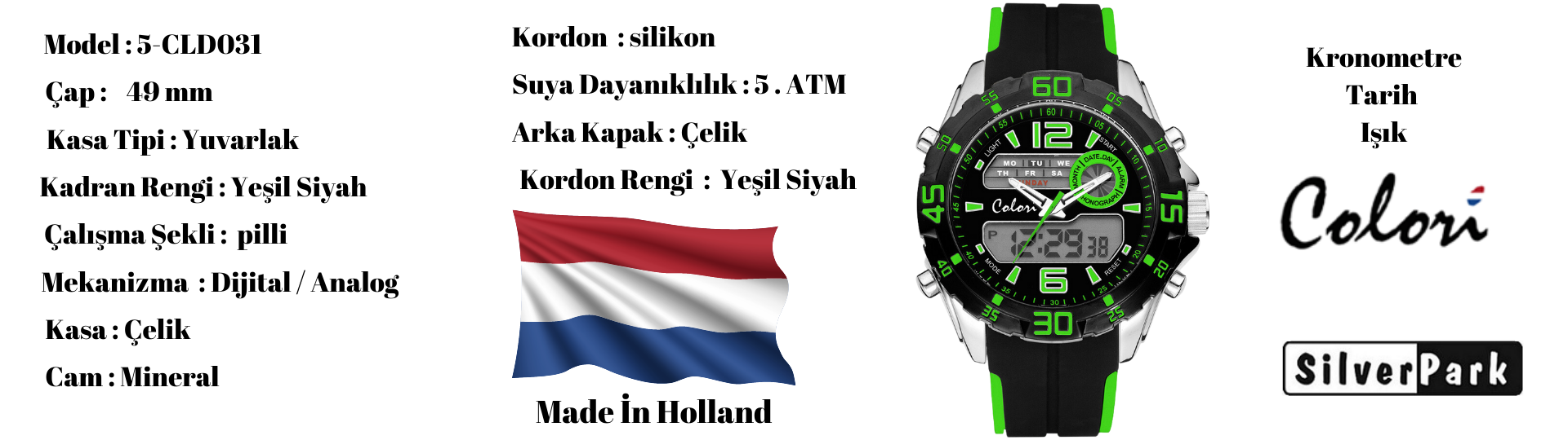Colori Siyah Yeşil Erkek Saat Digital Sports Collection CLD031